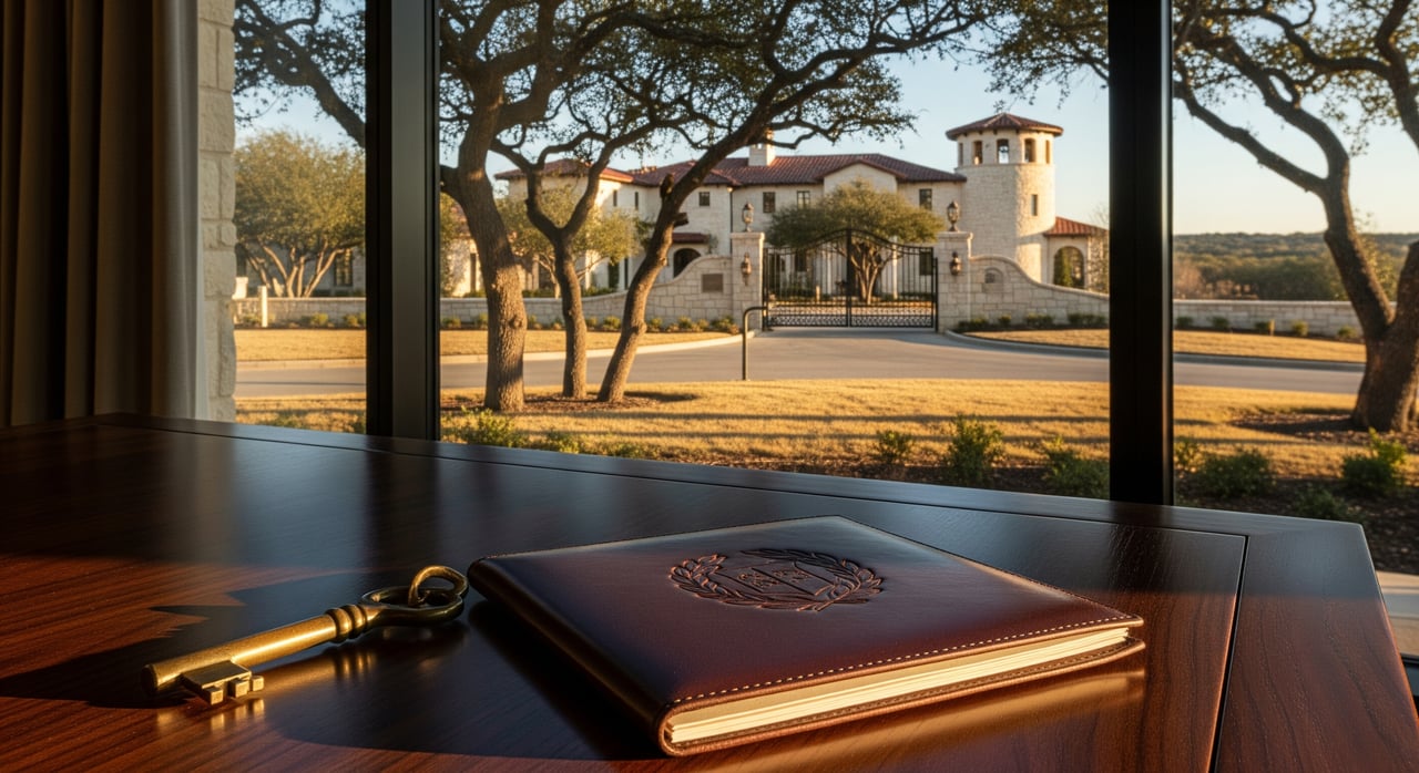 Nestled within a private, guard gated community of Cordillera Ranch, this stunning Mediterranean-style estate features an 850 sq ft Casita situated on a 3.09-acre lot with breathtaking hill country views.
